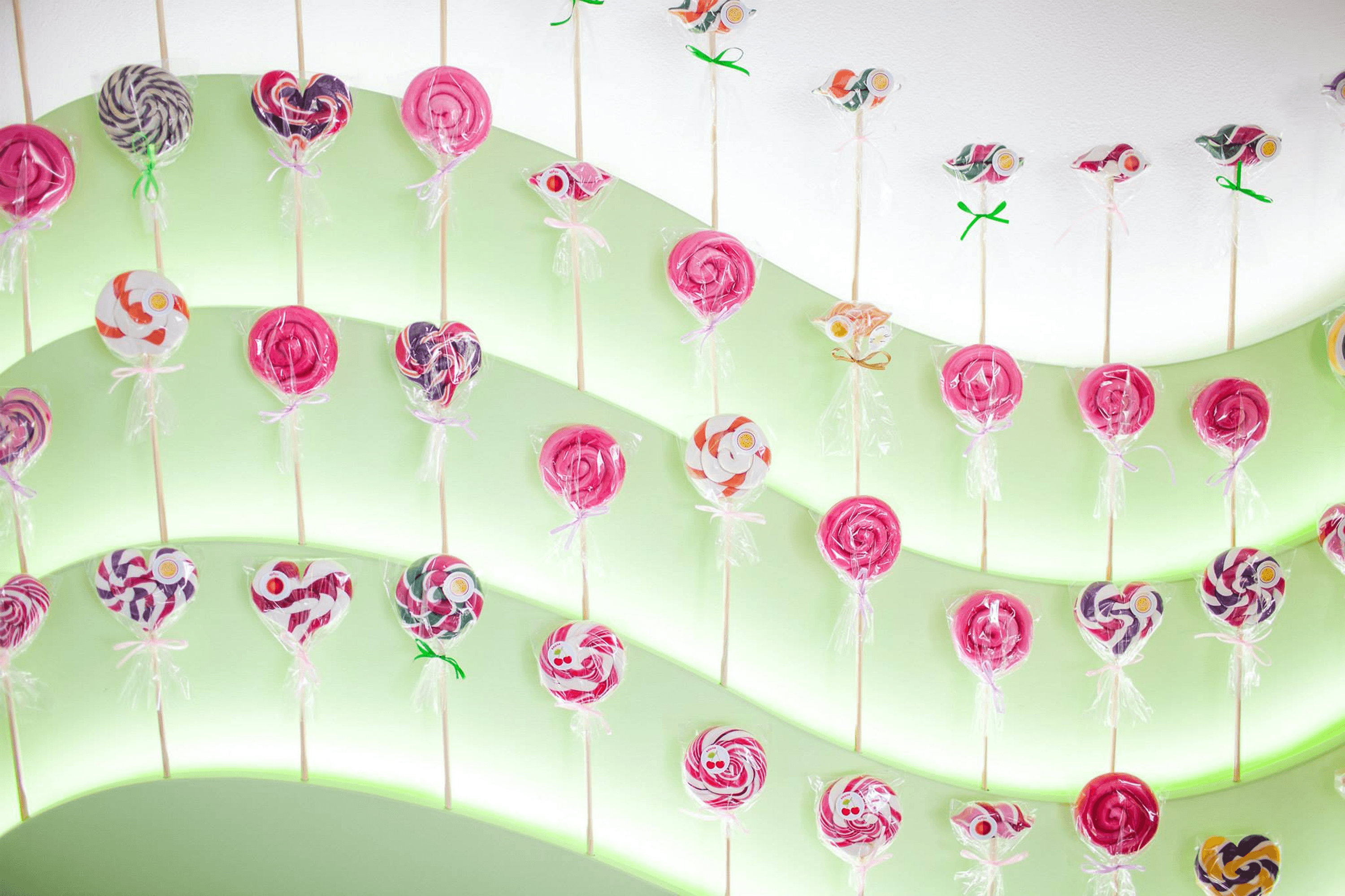 Lol&Pop’s production facility is located on Kyiv’s Left Bank, on the ground floor of an apartment building. The entrance looks festive: railings painted red and white resemble a Christmas candy cane, while the glass doors are decorated with white stickers featuring the brand’s logo and images of candy.
