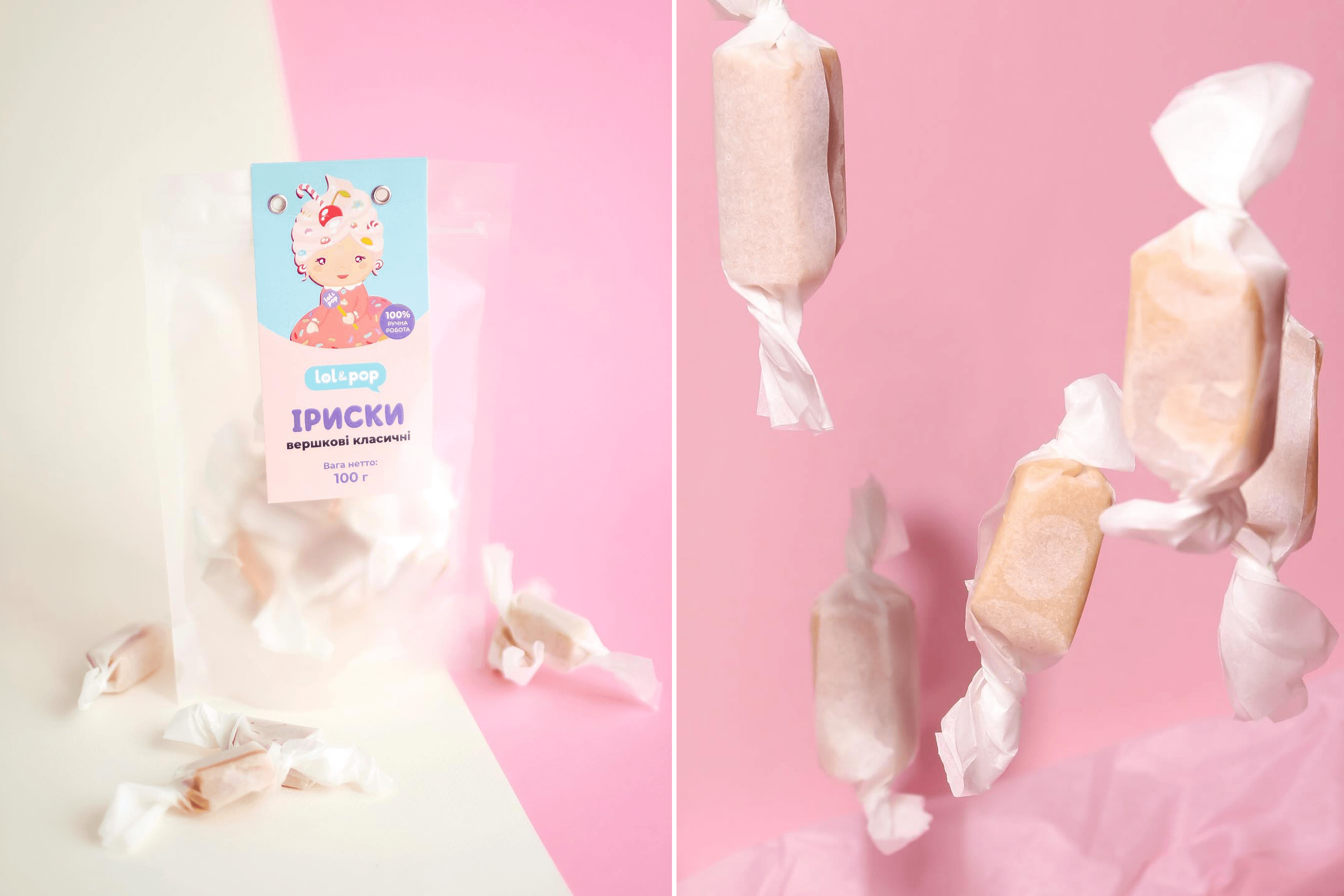 Olena Tokar is a 40-year-old entrepreneur from Kyiv who founded the craft brand of natural sweets Lol&Pop together with her husband, Dmytro, in 2013. The brand’s signature product, round candies with corporate logos embedded inside, quickly became popular among business clients, who order them as gifts for partners and employees.