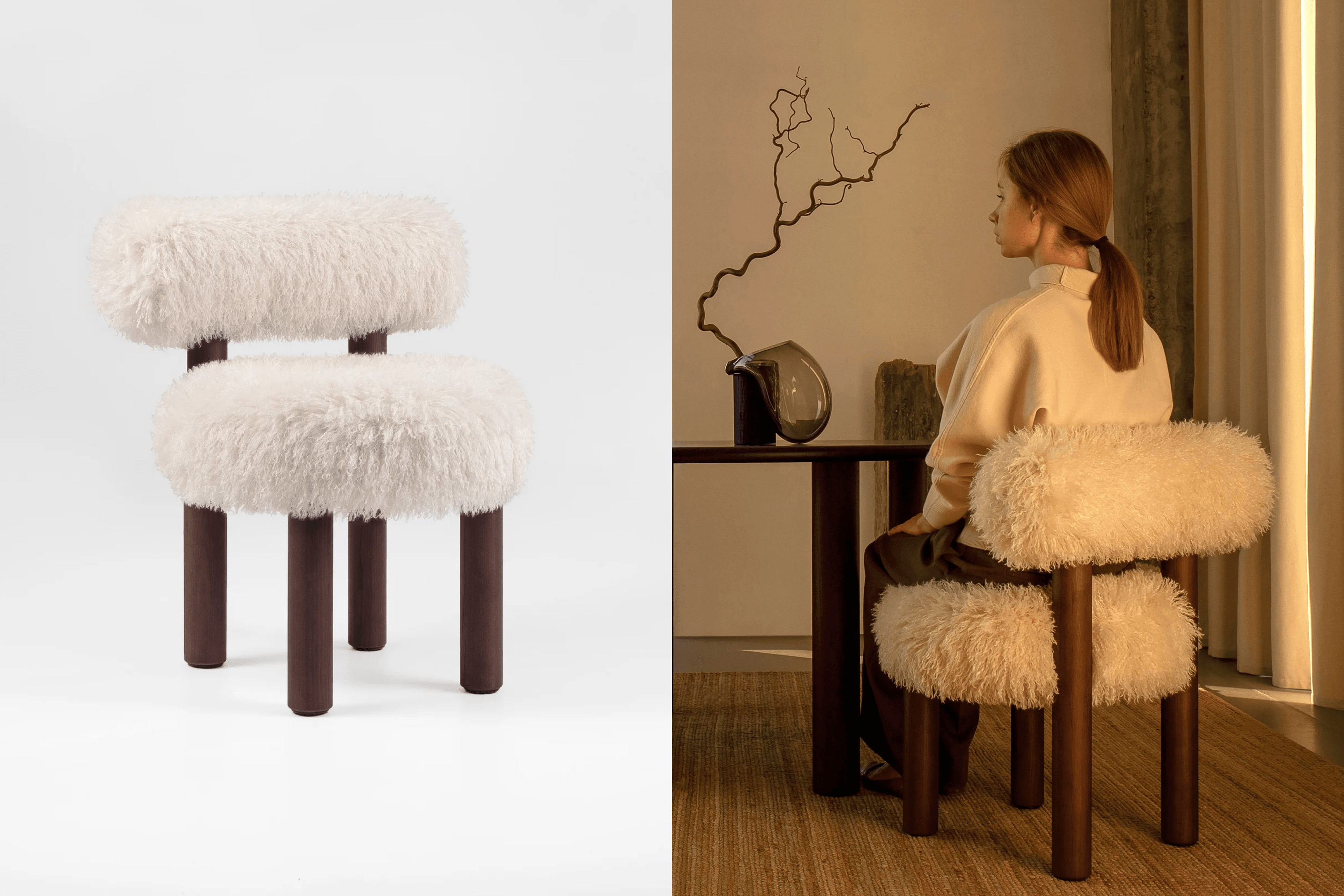 Some orders are completely unpredictable. Our fluffy Gropius chairs were once ordered for a showroom in Rio de Janeiro, Brazil. I was surprised: it’s very hot there, yet they chose faux fur. At first glance, natural fabric would seem more logical. The same chairs were also shipped to Dubai, where summer temperatures reach +50°C. But they love air conditioning there, so sitting on fur is actually quite comfortable.