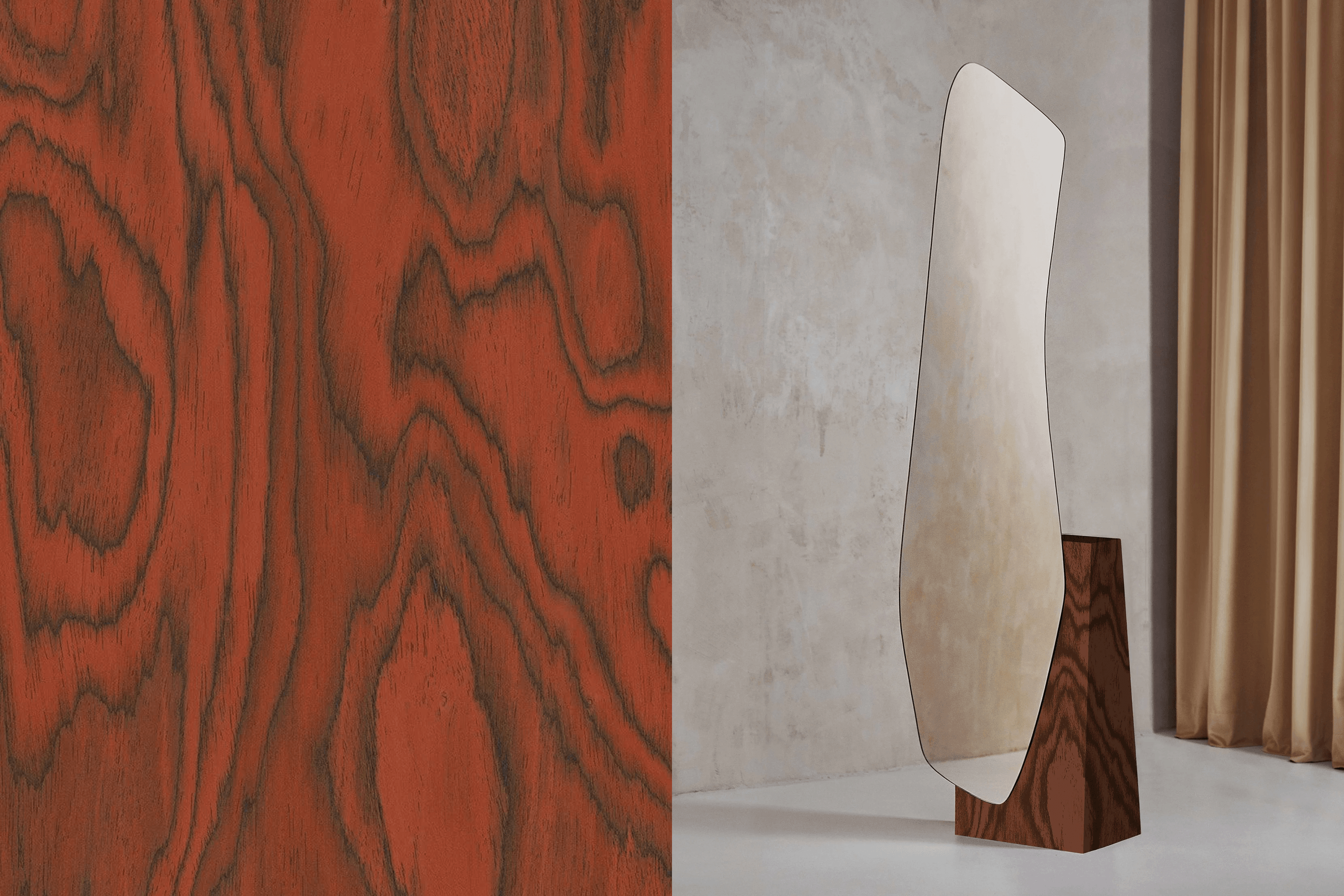 French designers Nathan Baraness and Maryna Dague created the Lake mirror collection for us, inspired by the fluid outlines of lakes seen from a bird’s-eye view.