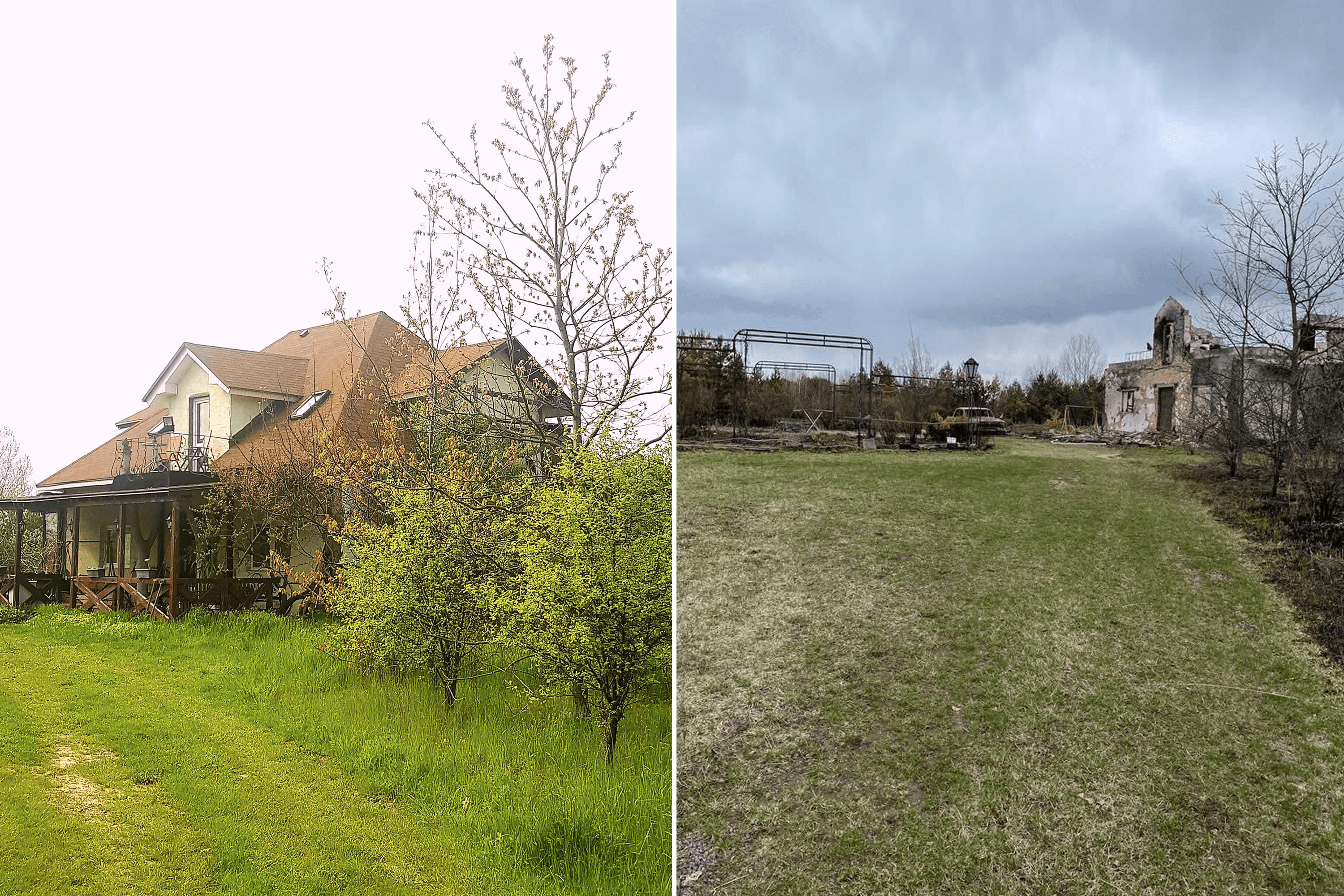 Elena never made it back to the site of her home in Motyzhyn, torched by Russian troops in March 2022. Her daughters convinced her that seeing the ruins was unnecessary. “I realized it would be unbearable to look at the foundation of the house we built with our own hands—the place where we were happy, where we were whole, and where my business once flourished,” she says.