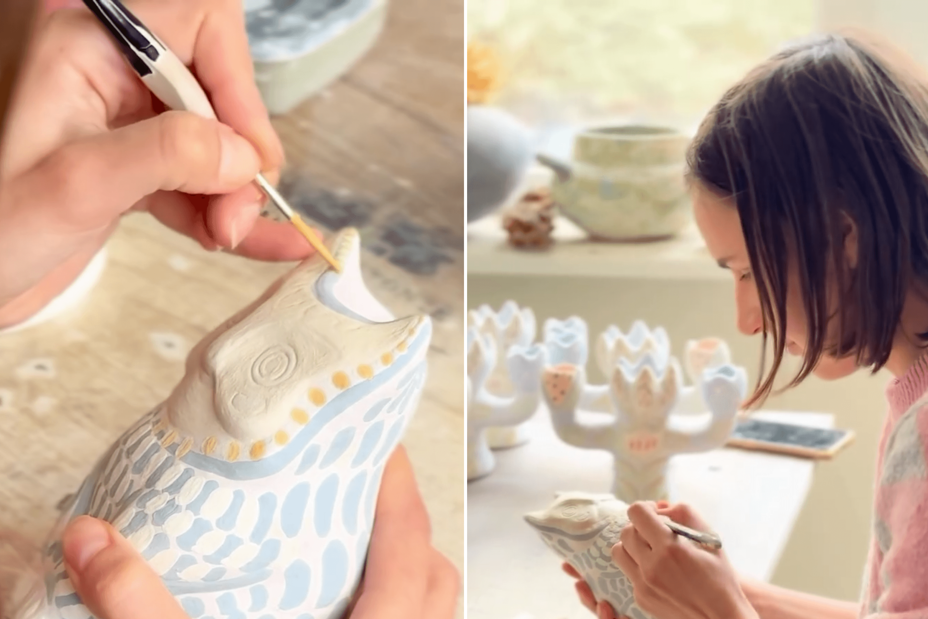 Yuliana: I go through works by Ukrainian artists, choose what I want to use, and consult with the team and Pavlo. Then I draw sketches. That’s my favorite part. After that I meet with the artisans, a ceramicist or an artist from the toy factory. They develop prototypes that I approve. Then we go into production.