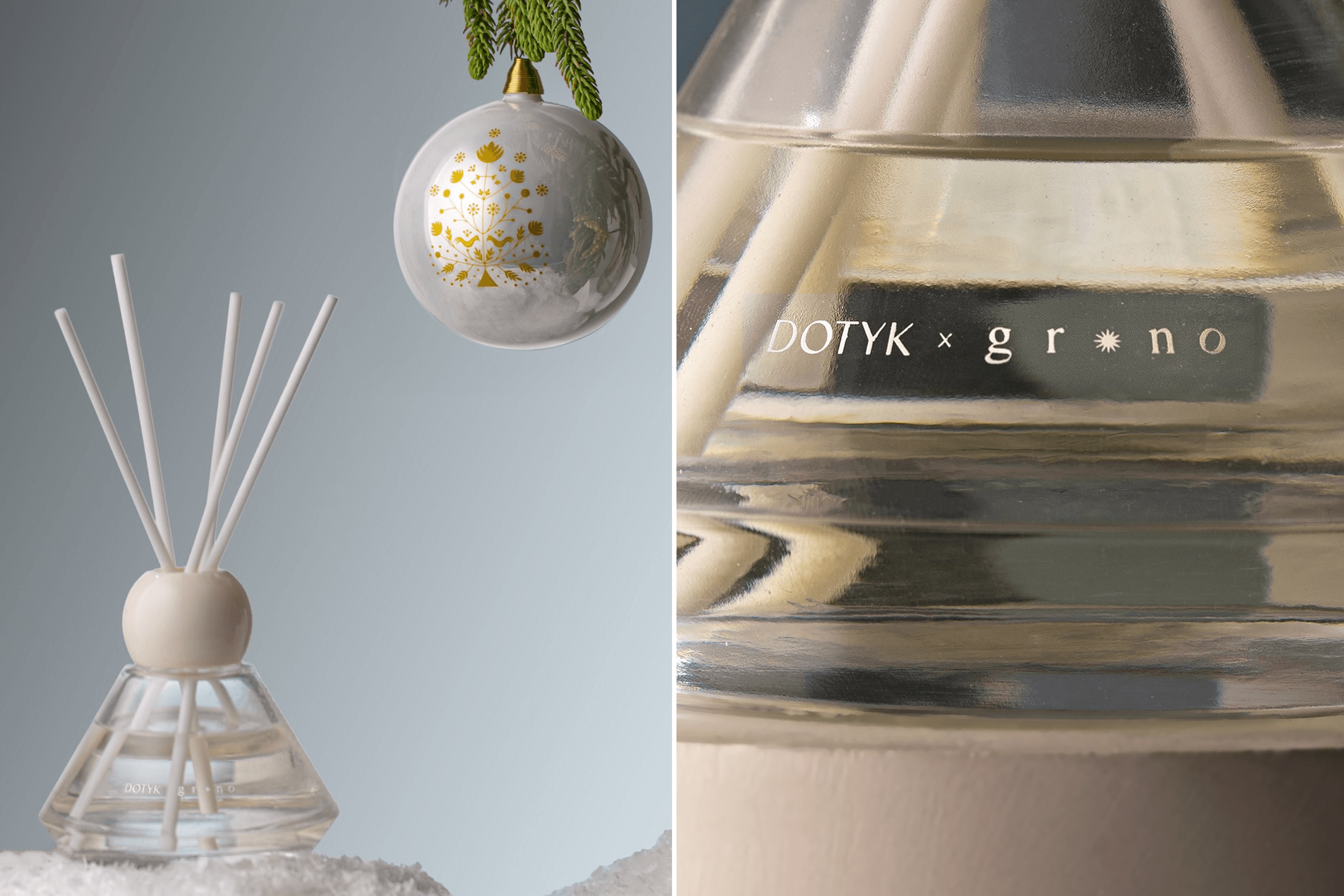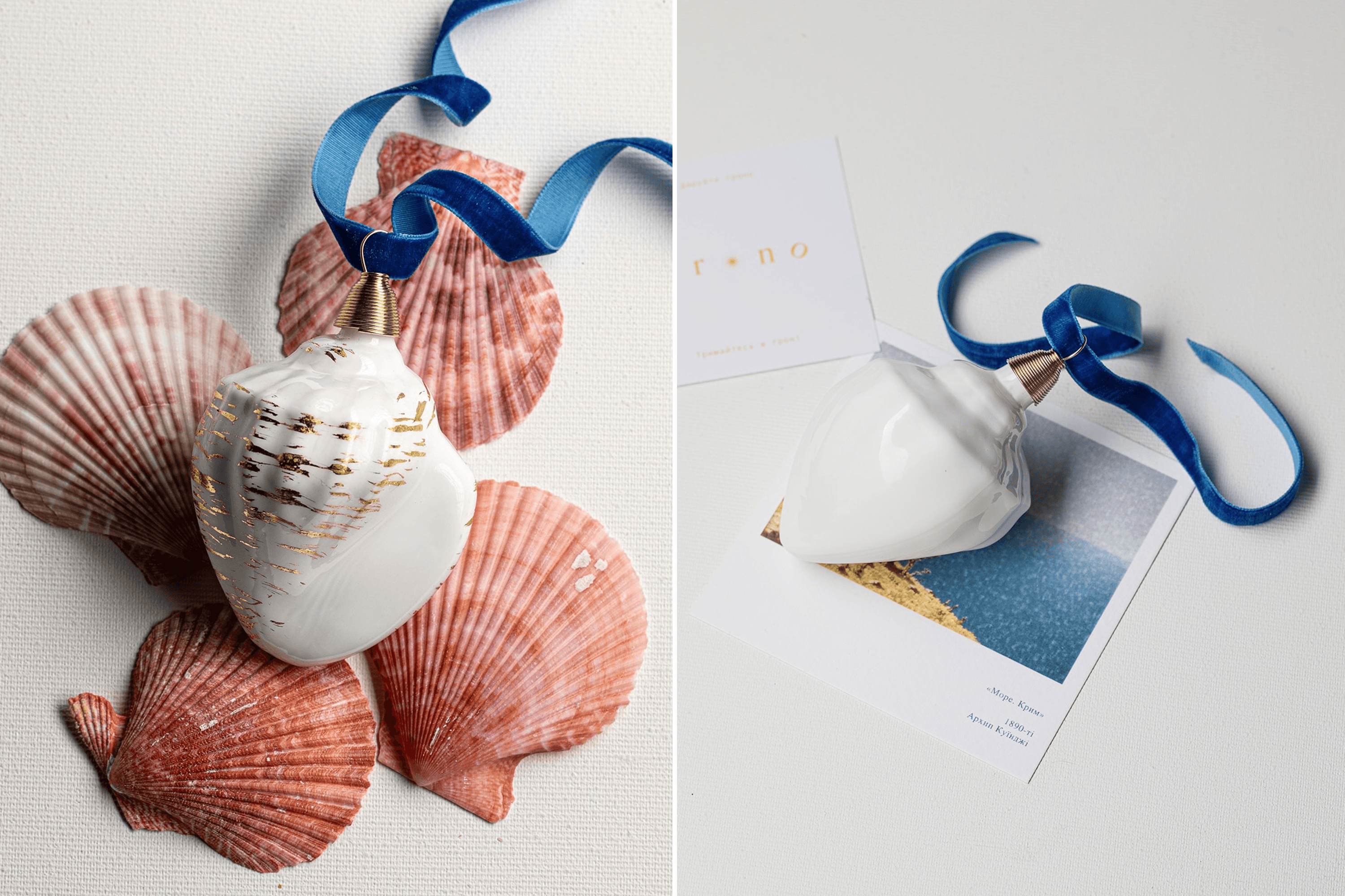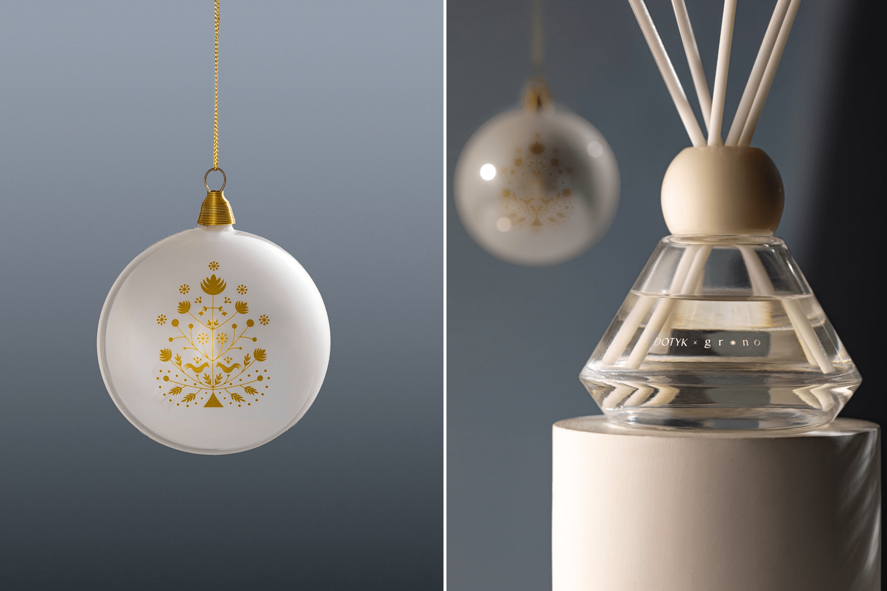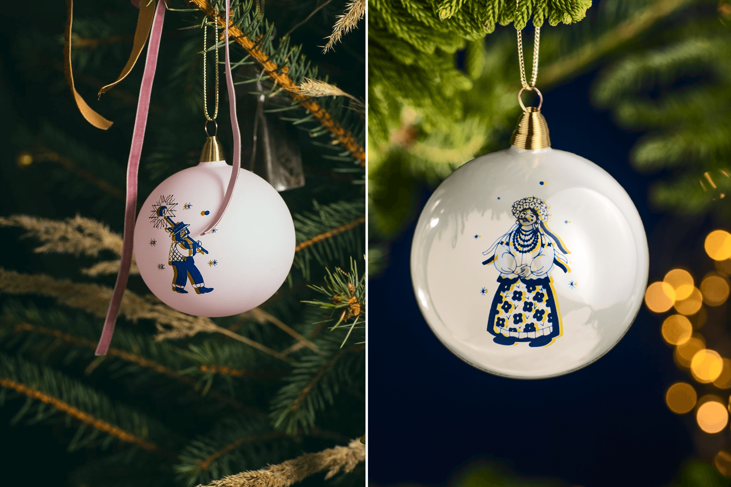 Yuliana: Recently we did our first collaboration with Dotyk, a Lviv skincare brand. It’s a set inspired by the Ukrainian tradition of painting the tree of life on the walls of homes. They made an aroma diffuser with a scent of fir and cedar, and we made a white glass christmas ornament painted with the tree of life. It’s a sweet collaboration about traditions, the smell of happiness and celebration. We liked this experience, and we have ideas for more, for example, with museums in Ukraine.