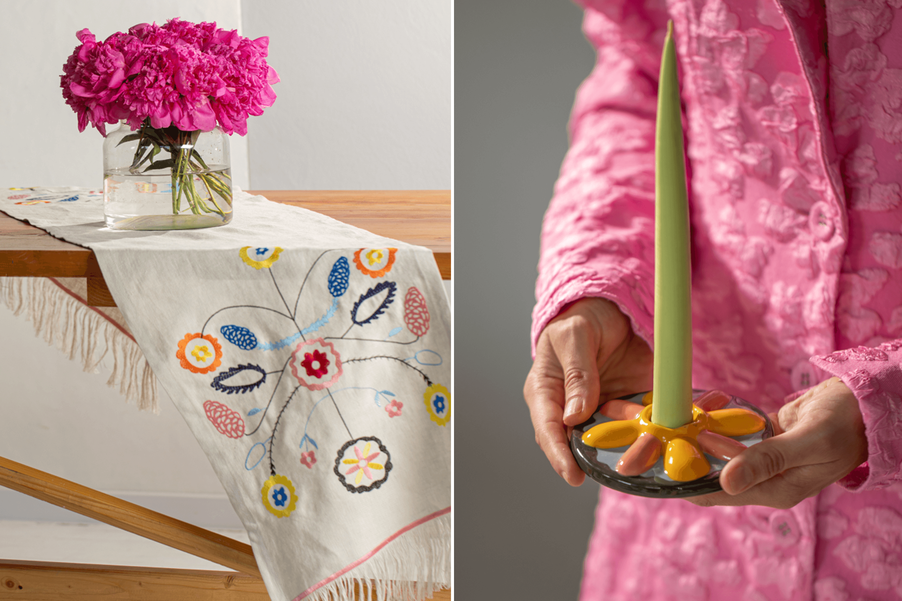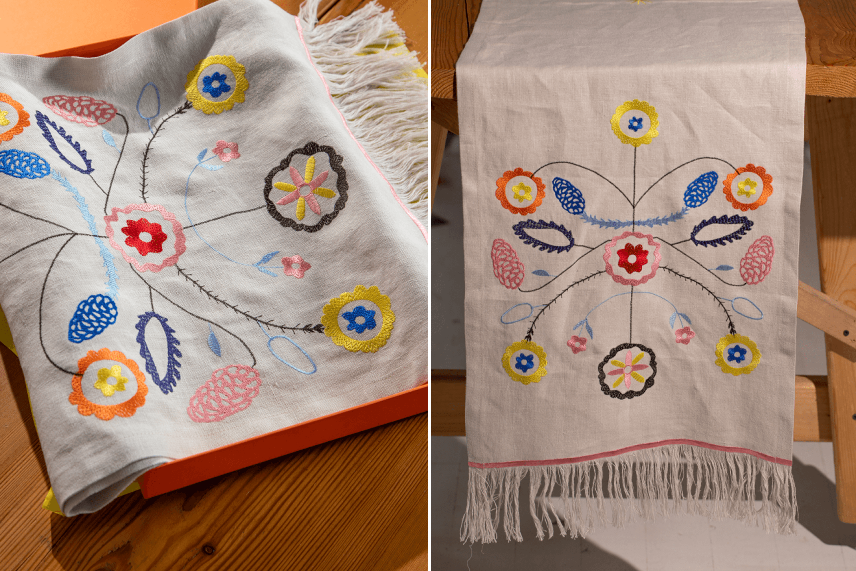 Over three and a half years, you’ve expanded your range significantly: Christmas tree decorations, candles, ceramic candlesticks, embroidered towels and tablecloths, silk scarves, silver and ceramic jewelry. What made you develop so many different lines?