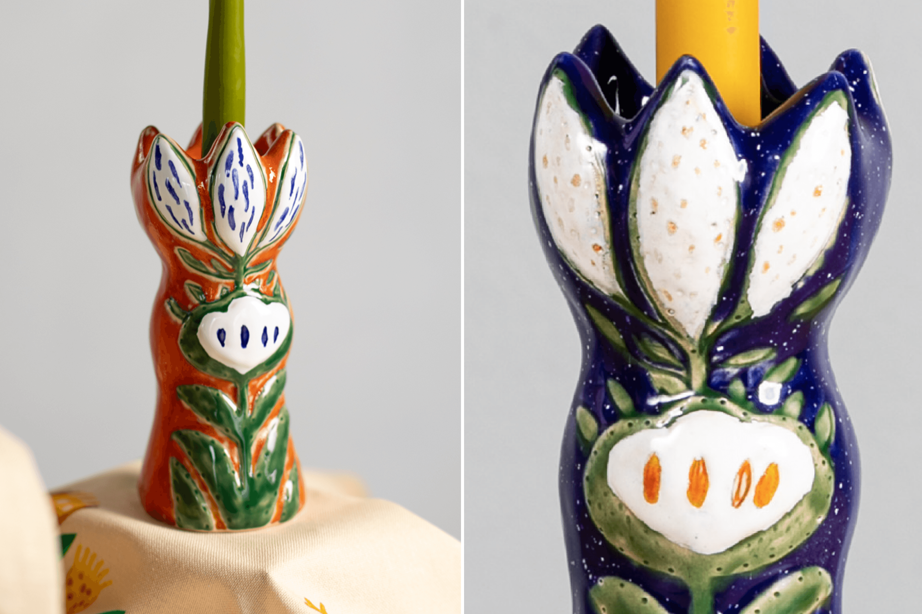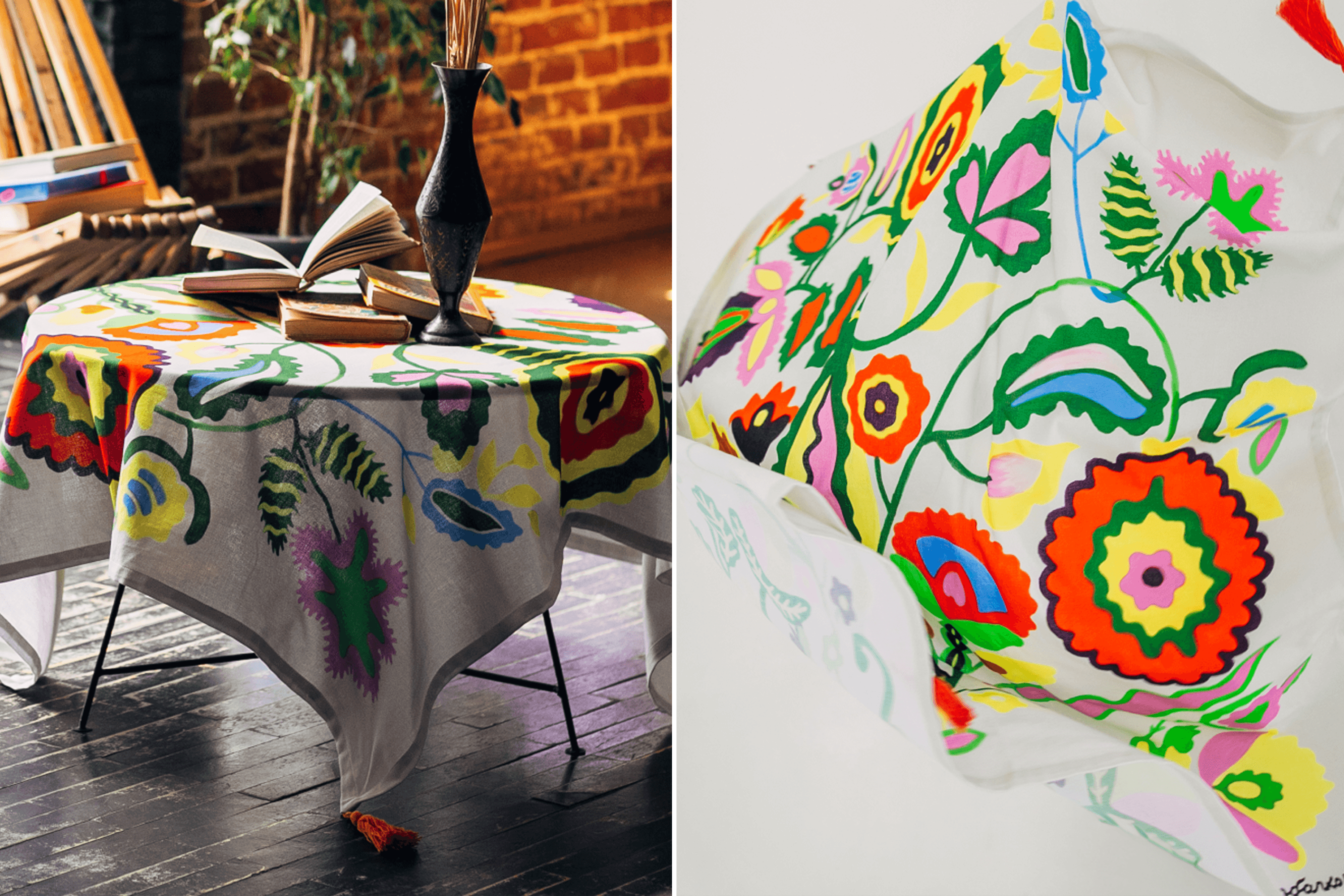 Yuliana: In the winter of 2023, we started looking for workshops to launch a new line of textiles and ceramics that I’d designed. I looked for artists whose work I wanted to put onto products and came across naive artist Polina Rayko. That’s how the Polina’s Flowers collection was born. Of course, the volumes aren’t anywhere near Christmas tree decorations, but people like them.