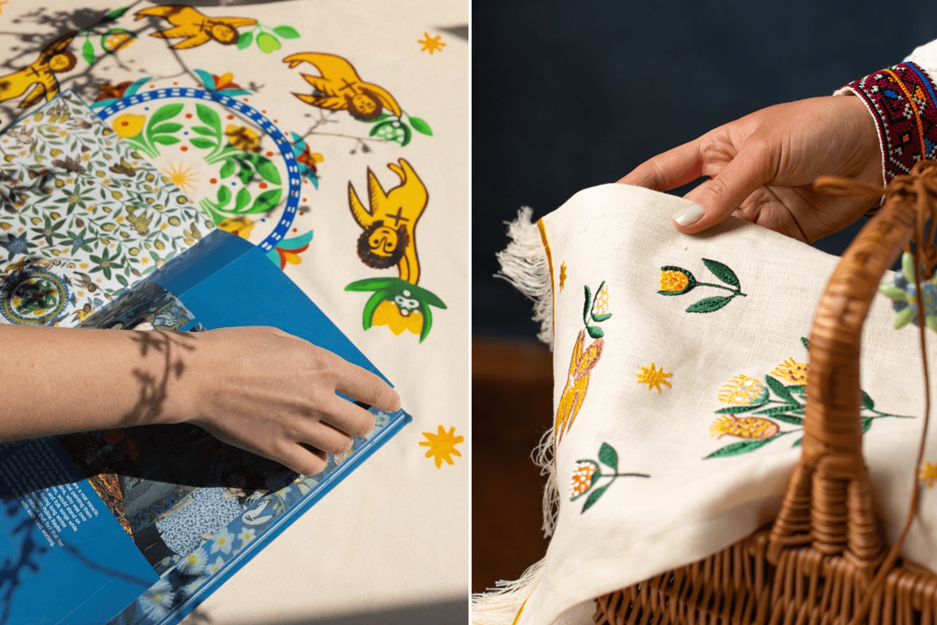 Yuliana: Yes, we don’t manufacture anything ourselves. In Kyiv, we make the printed ornaments and some of the packaging. Additional packaging comes from a workshop in Dnipro. Everything else is made in Lviv: hand-painted ornaments, ceramics, jewelry, and textiles.