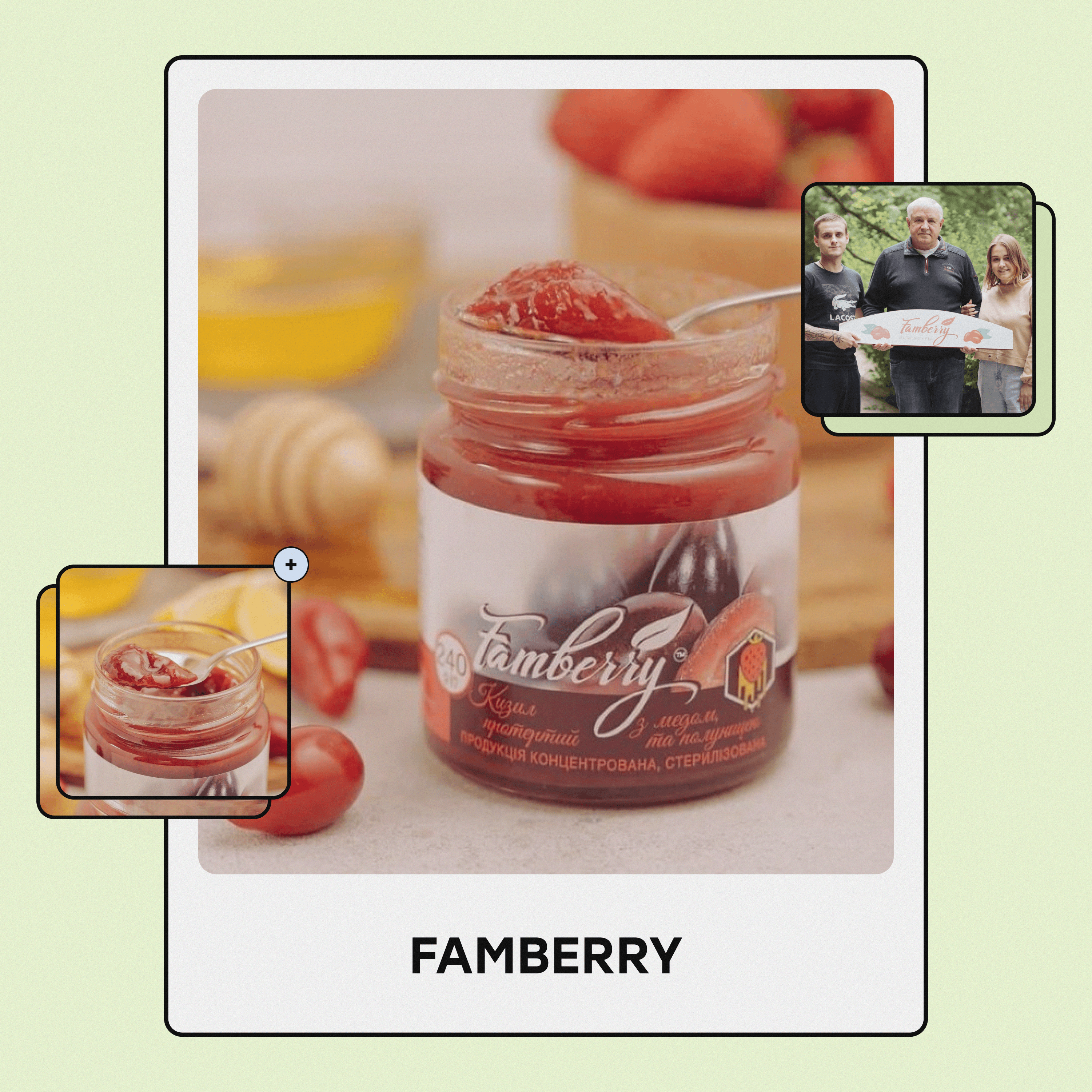 About the business: An organic brand of jams and sauces made from cornelian cherries—berries known for their tart, sweet-and-sour flavor. This is a full-cycle production: the berries are grown in greenhouses, stored in specialized freezers, and processed into jams or sauces using modern equipment. Famberry products are organic and carry the Organic Standard certification.