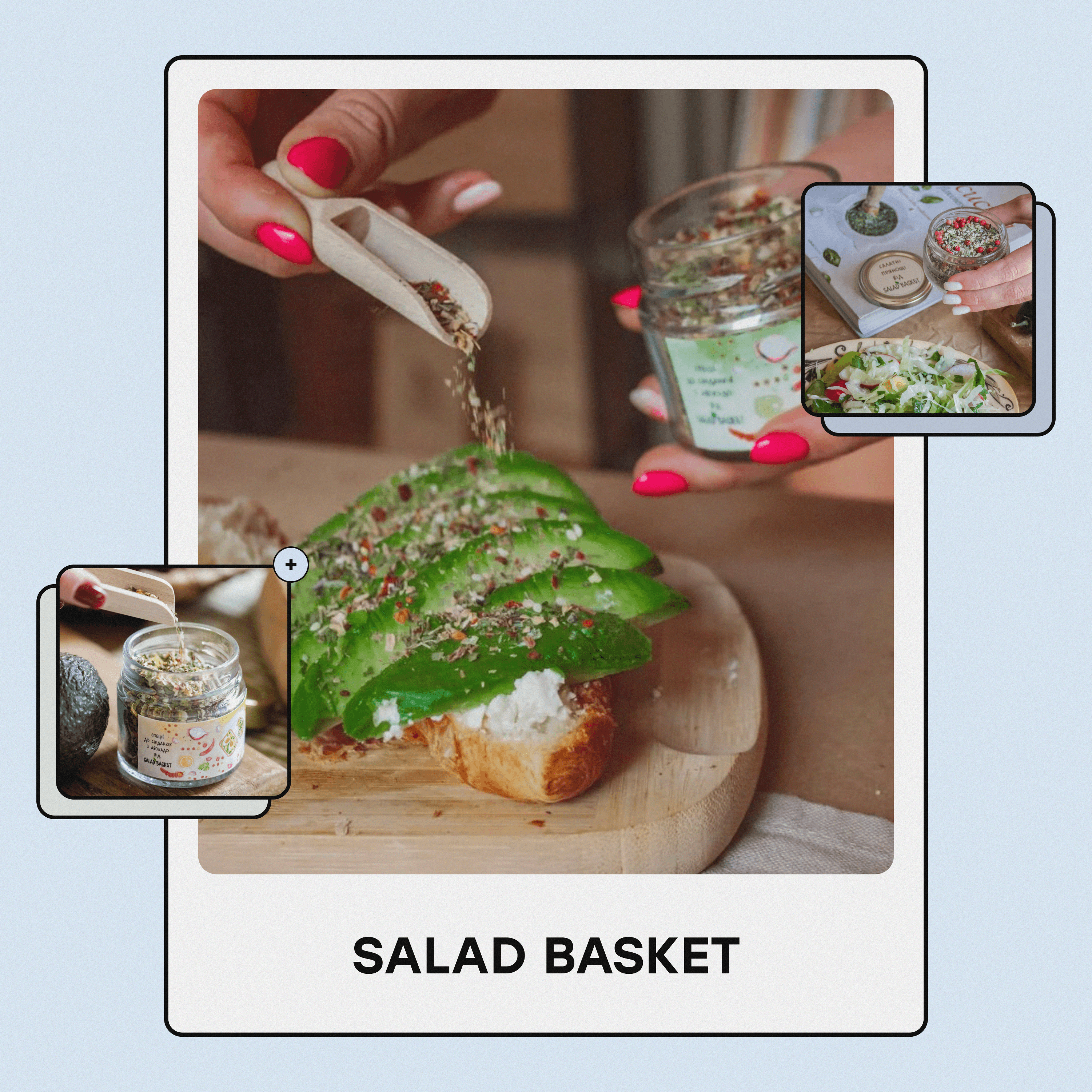Salad Basket offers an extensive selection of salts, including flavored varieties like cheese, mushroom, smoked citrus, spicy, and garlic, as well as blends with aromatic herbs and vegetables. The brand also crafts jams from pine cones and rose petals, and sauces made from seasonal fruits and vegetables. Alongside classic options, they offer unique sauces like orange mustard, plum curry, and hot honey.